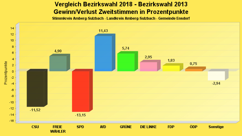 | Partei | Zweitstimmen 2018 | Prozent 2018 | Zweitstimmen 2013 | Prozent 2013 | |